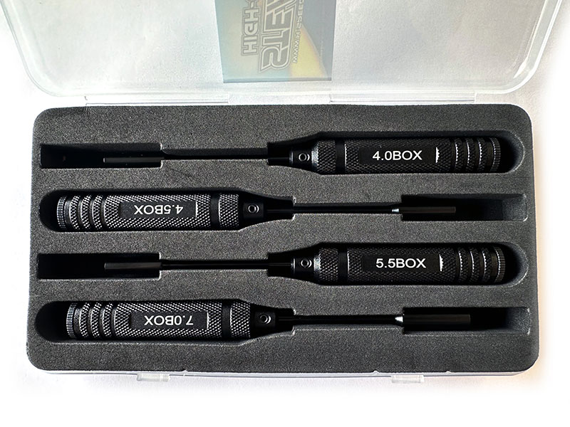 Unsere H-SPEED Stealth Tools sind komplett in edlem Schwarz gehalten und unverzichtbar in jedem Rennstall. Alle Werkzeuge bestehen aus extra hartem und langlebigem Material und sind mit gelasertem Logo und Größenbezeichnung versehen. Verfügbar in diversen Sets oder einzeln, bieten die 4er Sets eine schicke Box und die Komplettsets eine praktische Werkzeugtasche. Qualität und Stil vereint für den perfekten RC-Rennsport!