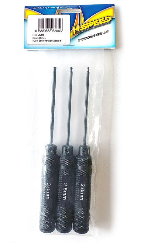 Stealth Tools Kugel-Sechskantschlüssel Set Größen: 2.0, 2.5, 3.0mm Anzahl: 3 Stk.Art. Nr.: HSPZ204