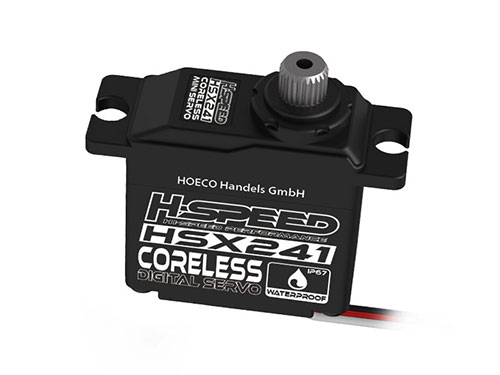 Der H-SPEED HSX241 Digital Mini Servo ist wasserdicht und kann in unterschiedlichen Wetterlagen verwendet werden. Dank seiner geringen Größe lässt es sich problemlos in RC-Modelle integrieren und spart dabei Platz. Es ist kompatibel mit 8,4V 2s Batterien, verfügt über einen langlebigen „coreless“ Motor und ein Doppelkugellager-Design mit hochpräzisen Titan-Zahnrädern.